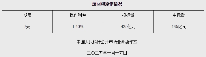 中国经济网版权所有 中国经济网新媒体矩阵 网络广播视听节目许可证(0107190)(京ICP040090) 市场公开业务交易公告[2025]198号 2025年10月15日,中国人民银行以固定利率和成交量竞价方式开展435亿元7天期反向续展操作。具体情况如下: (编辑:单小兵)